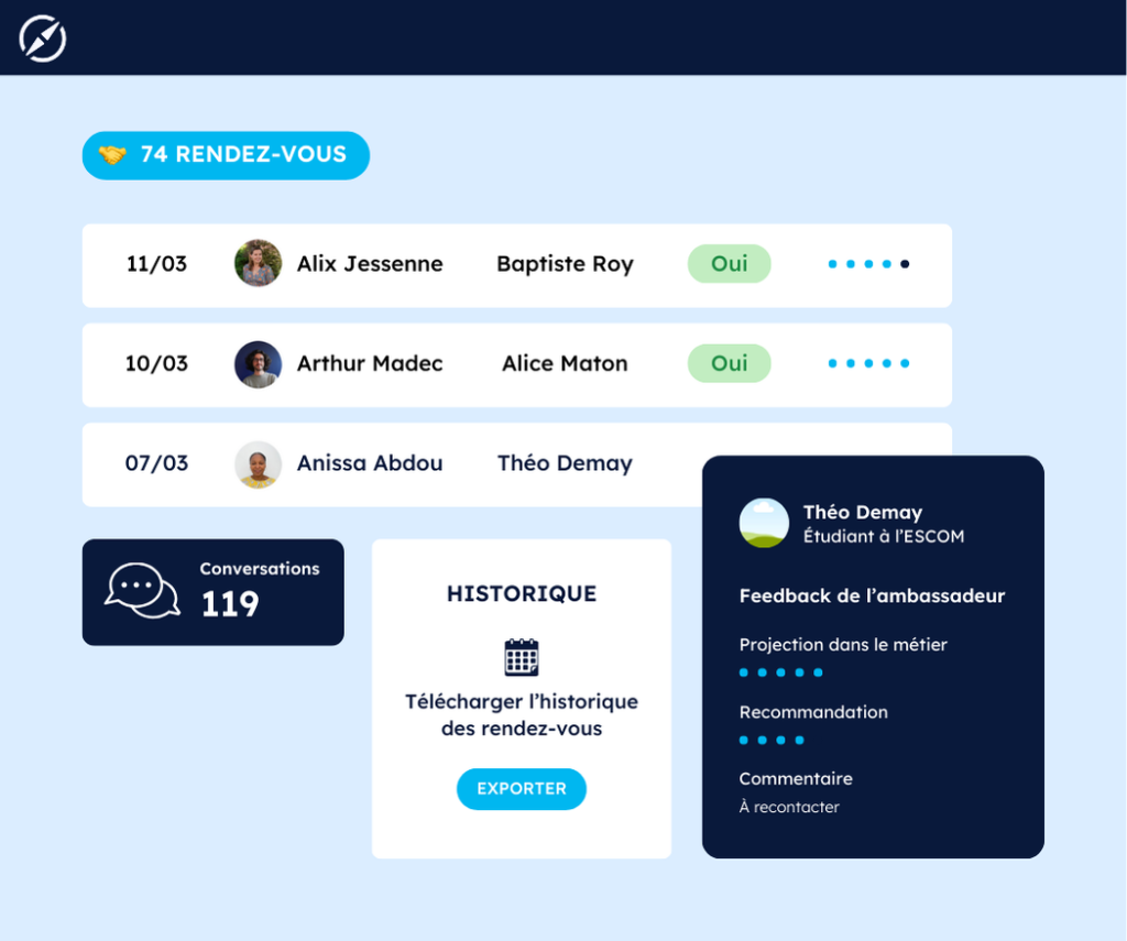 Accédez à des informations détaillées sur les rendez-vous effectués par vos ambassadeurs.