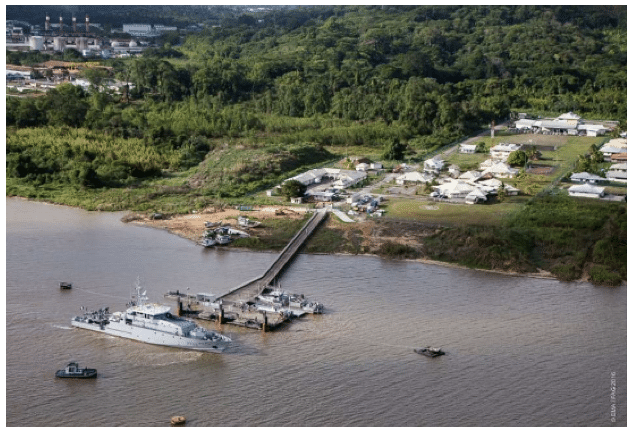 La mission débute aux aurores, tandis que le jour n’est pas encore levé et que rien n’est encore visible. La forêt équatoriale et la mangrove sont les seules maîtresses de la nuit. Crapauds buffles, singes hurleurs et oiseaux s’en donnent à cœur joie. Ils emplissent la nuit de sons divers. Rien d’étonnant : la base navale de la Marine nationale qui accueille nos patrouilleurs est située sur le fleuve du Mahury à Dégrad-des-Cannes en Guyane, en lisière de forêt.